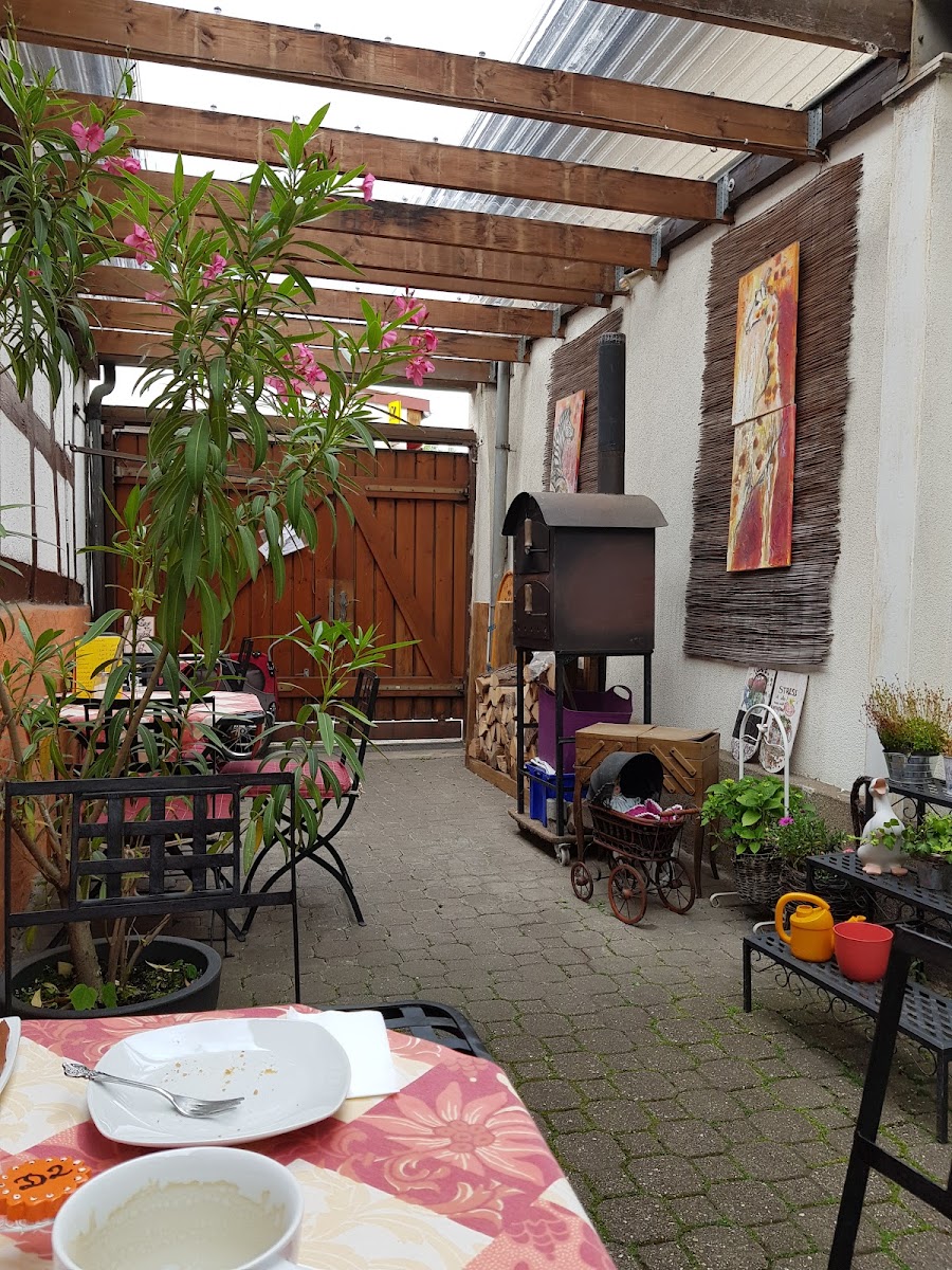 Cafe Böhnchen is a small, warmly appointed coffee shop in the heart of Billigheim-Ingenheim, sitting quietly along Hauptstraße. The intimate indoor space pairs nicely with a modest outdoor seating area in a sheltered courtyard, making it a calm spot to pause during a casual stroll through the village.